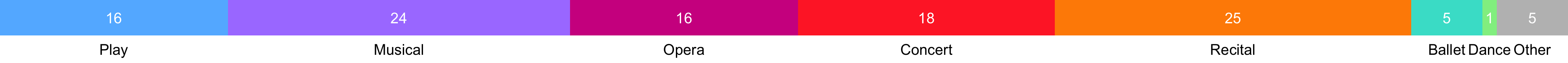 I love going to live performances such as plays, musicals, operas, and concerts. In 2024, inspired by a friend of mine, I consulted my stack of programs and Playbills at home and made a list of all the shows I had seen since 2014.1 As any good statistician would do with such a rich dataset, I did some exploratory data analysis and these are the results.